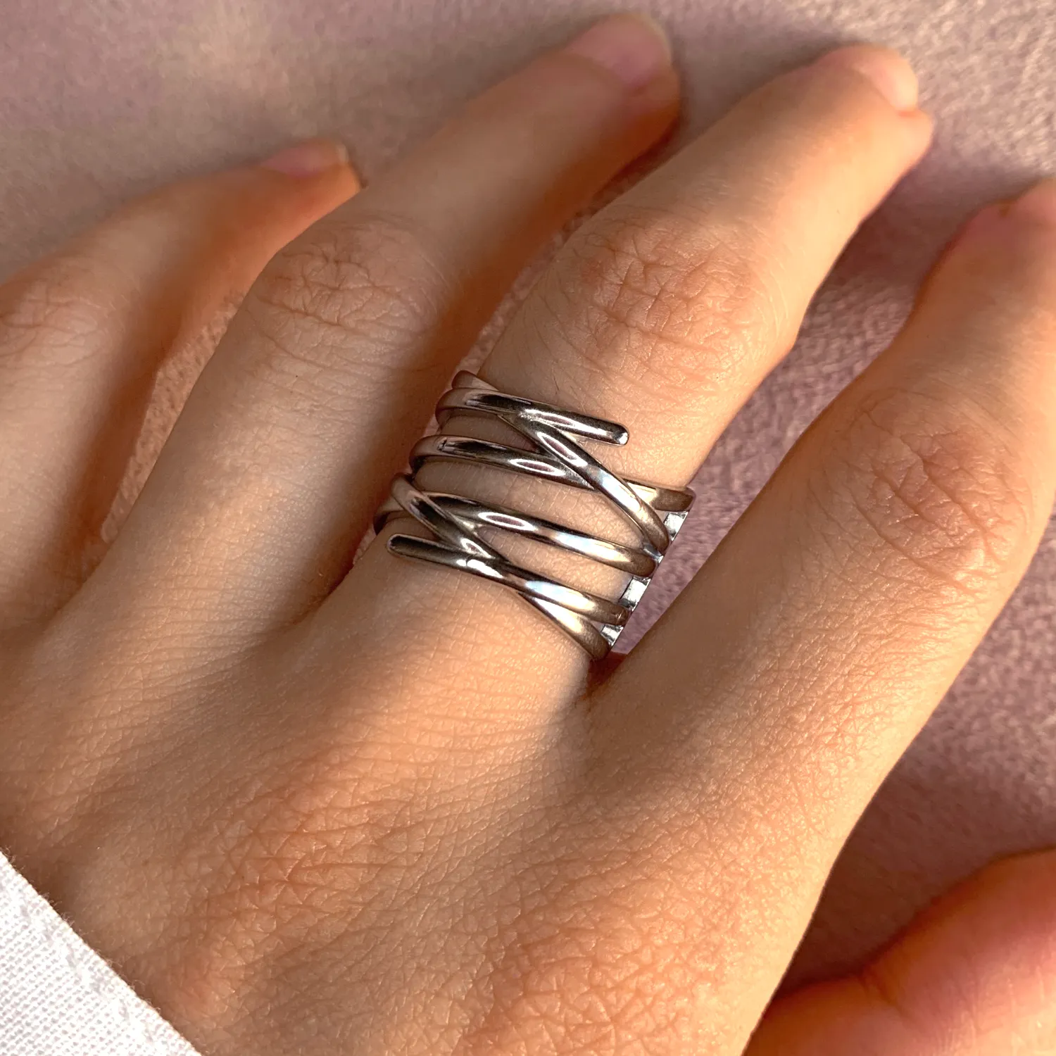 La bague Ania, c’est une bague au motif croisé argenté et qui donne un look unique