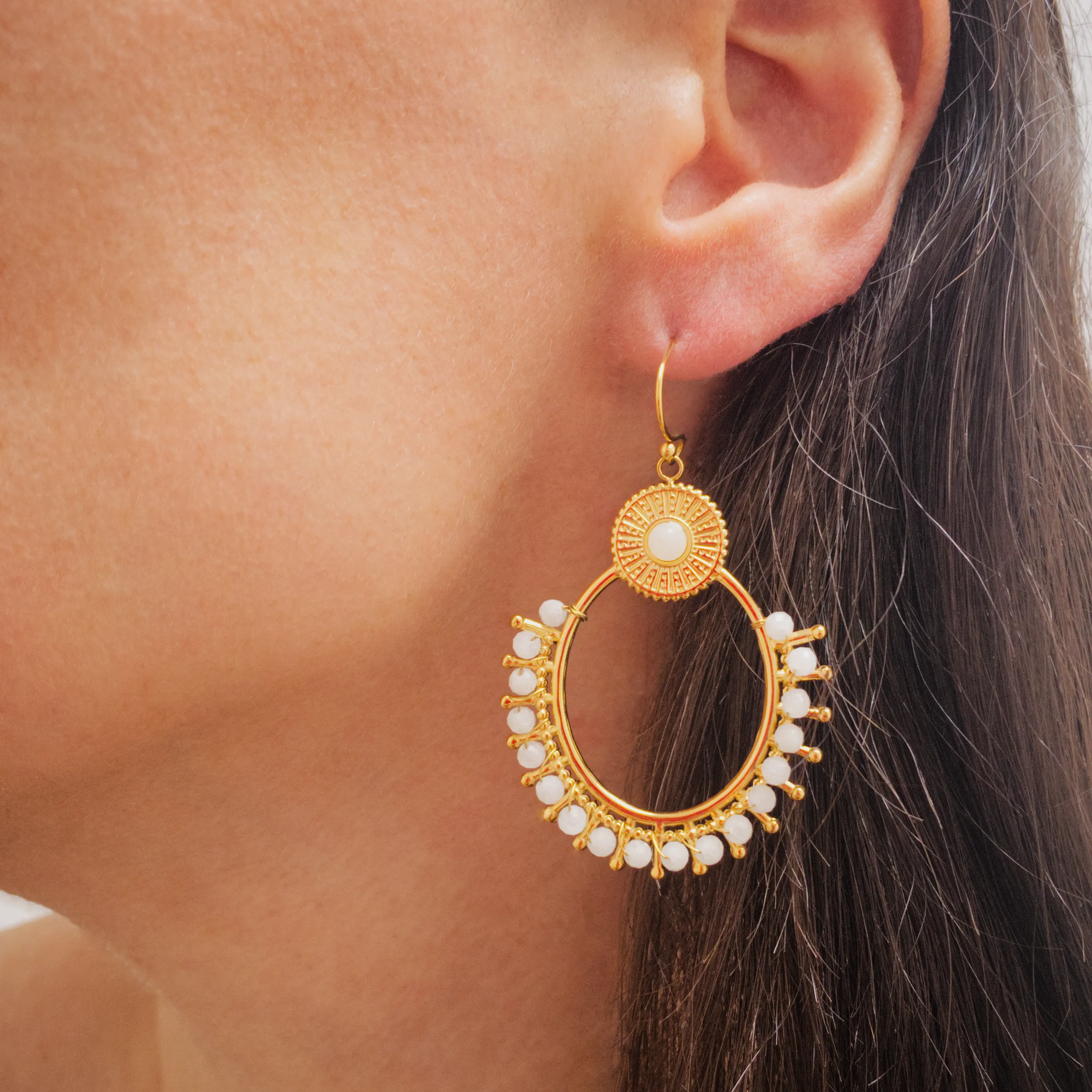 Boucle d’oreilles en acier inoxydable composé de perles blanche