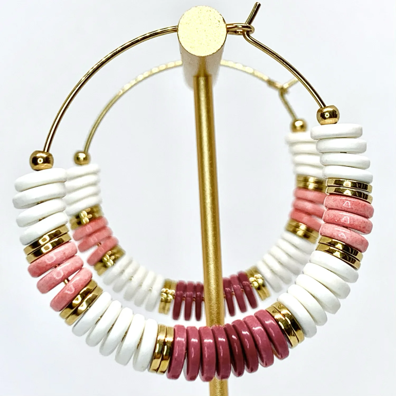 Boucles d’oreilles en perles en acier inoxydable ornées de pierres fines