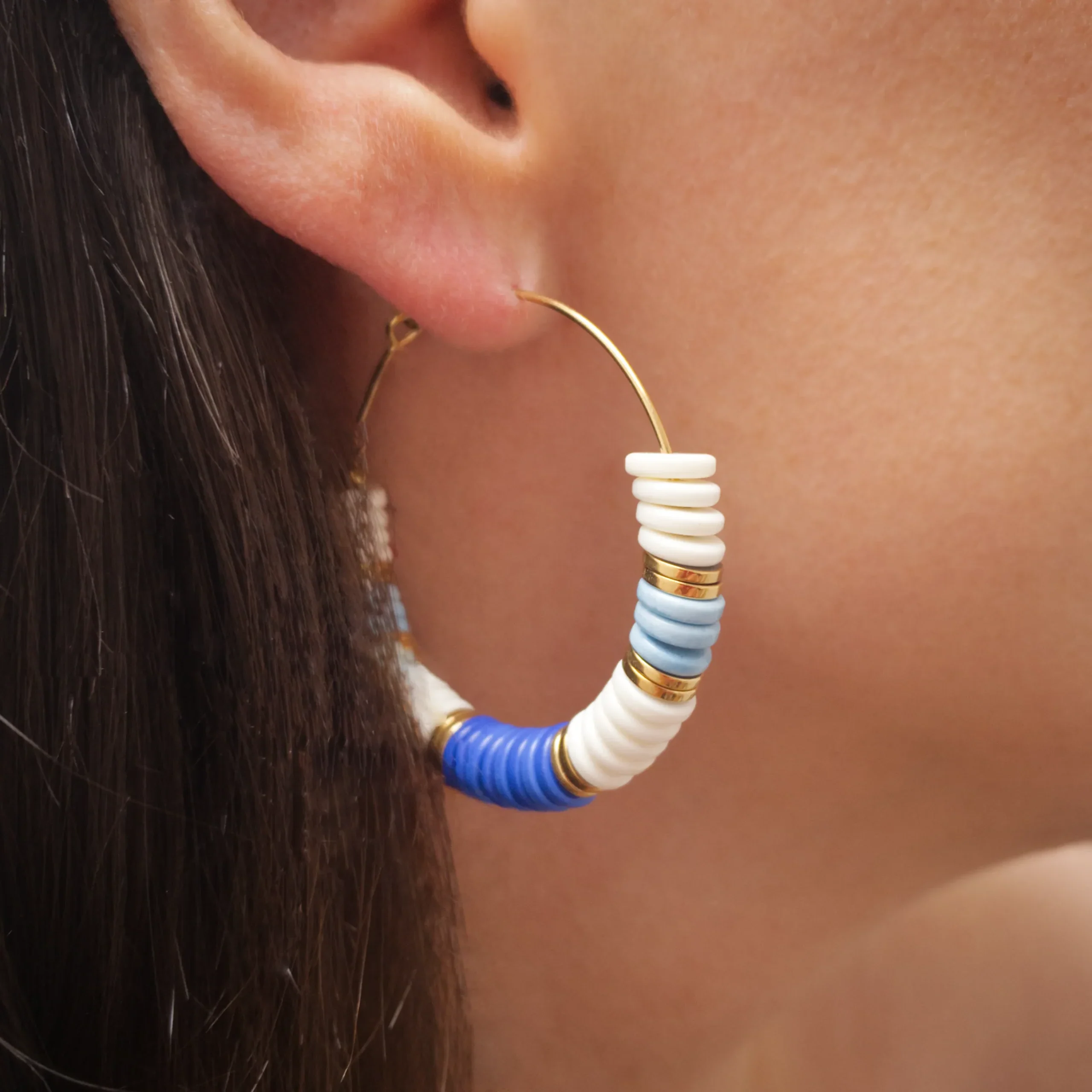 Boucles d’oreilles en perles bleu en acier inoxydable