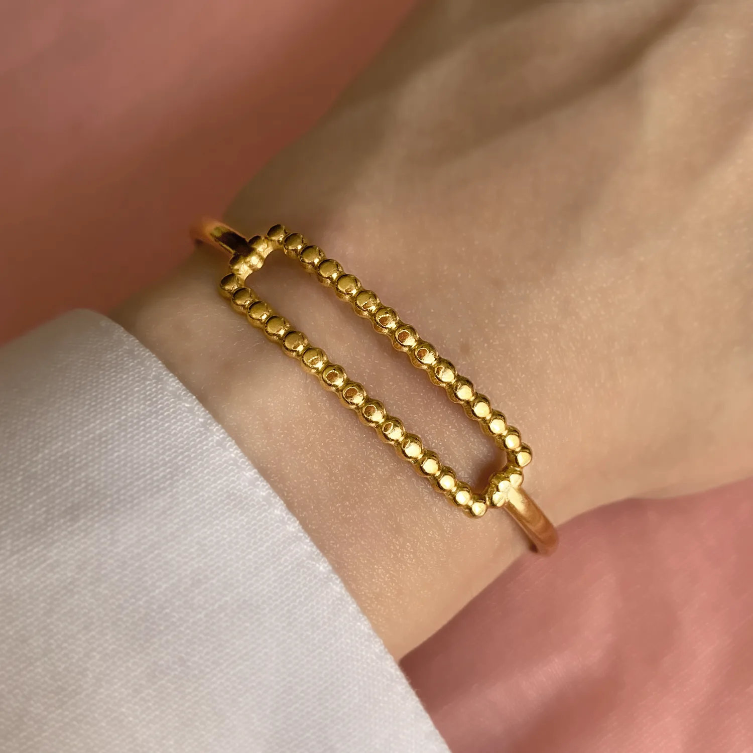 Un jour, Camille, à la recherche d’un bijou significatif, trouva ce bracelet. En l’essayant, elle sentit une force nouvelle, comme si le rectangle capturait et amplifiait sa propre lumière intérieure. Le bracelet devint son symbole de confiance et de détermination, l’accompagnant dans toutes ses ambitions. 💫
