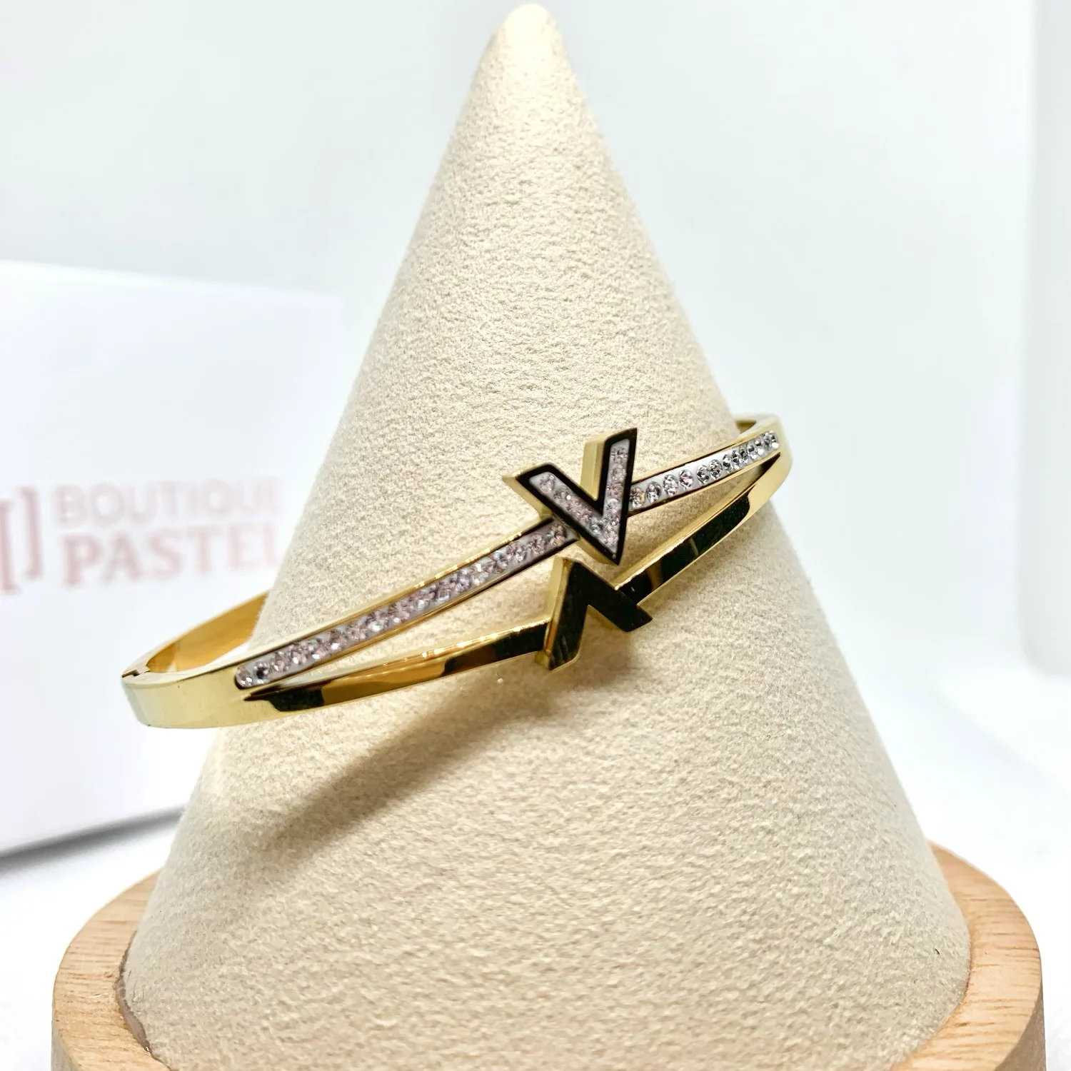 • Bracelet jonc en acier inoxydable en forme de V avec des strass