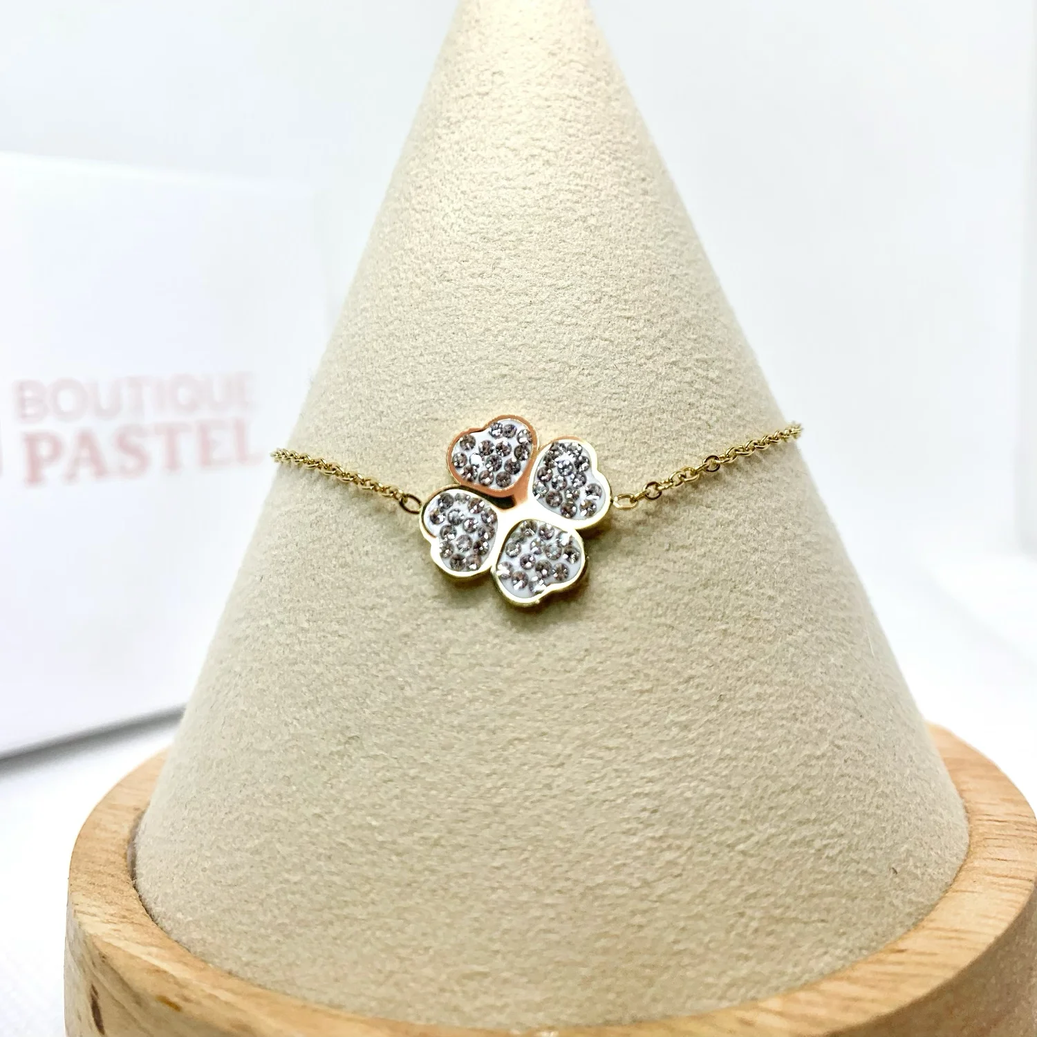 • Bracelet en acier inoxydable en forme de trèfle et en strass