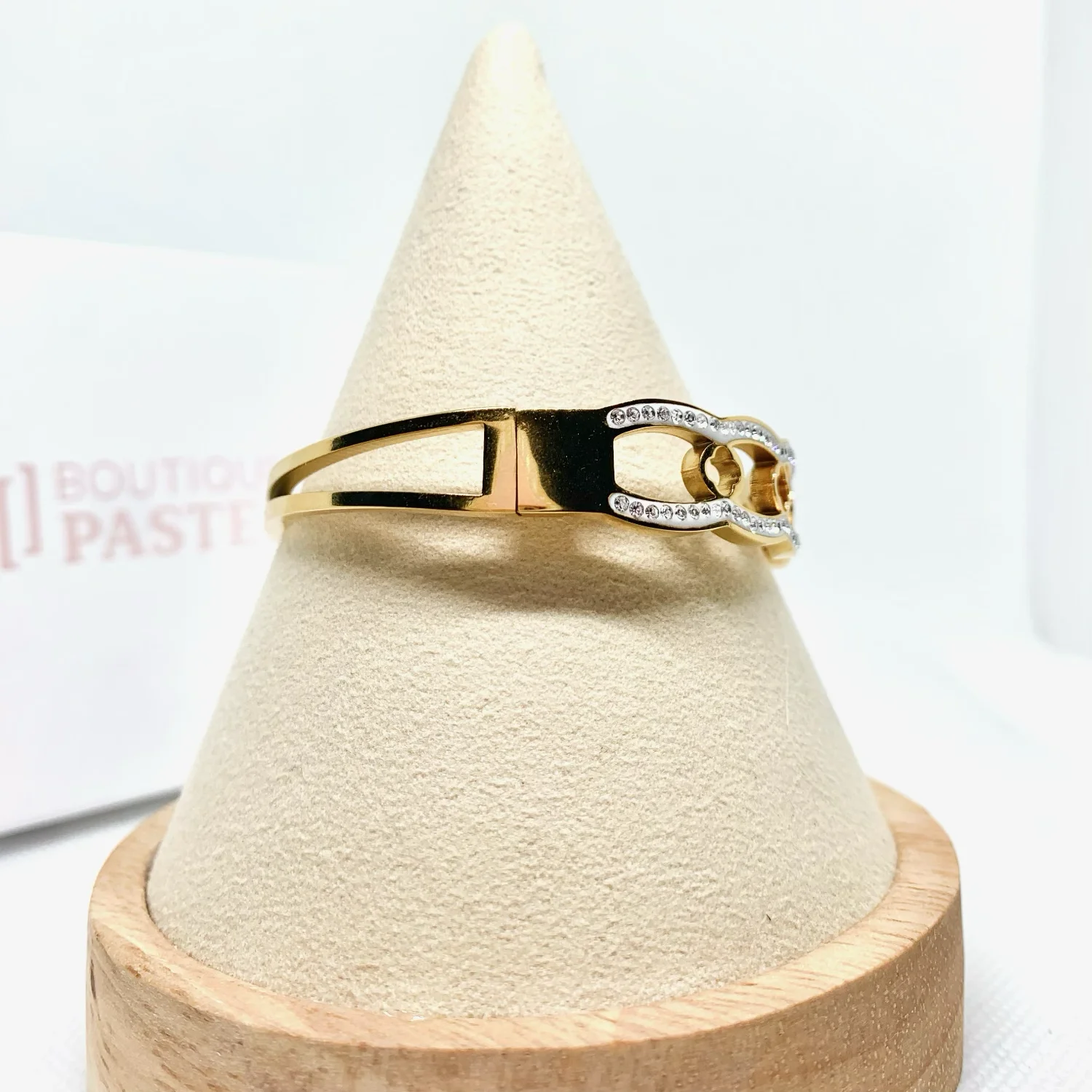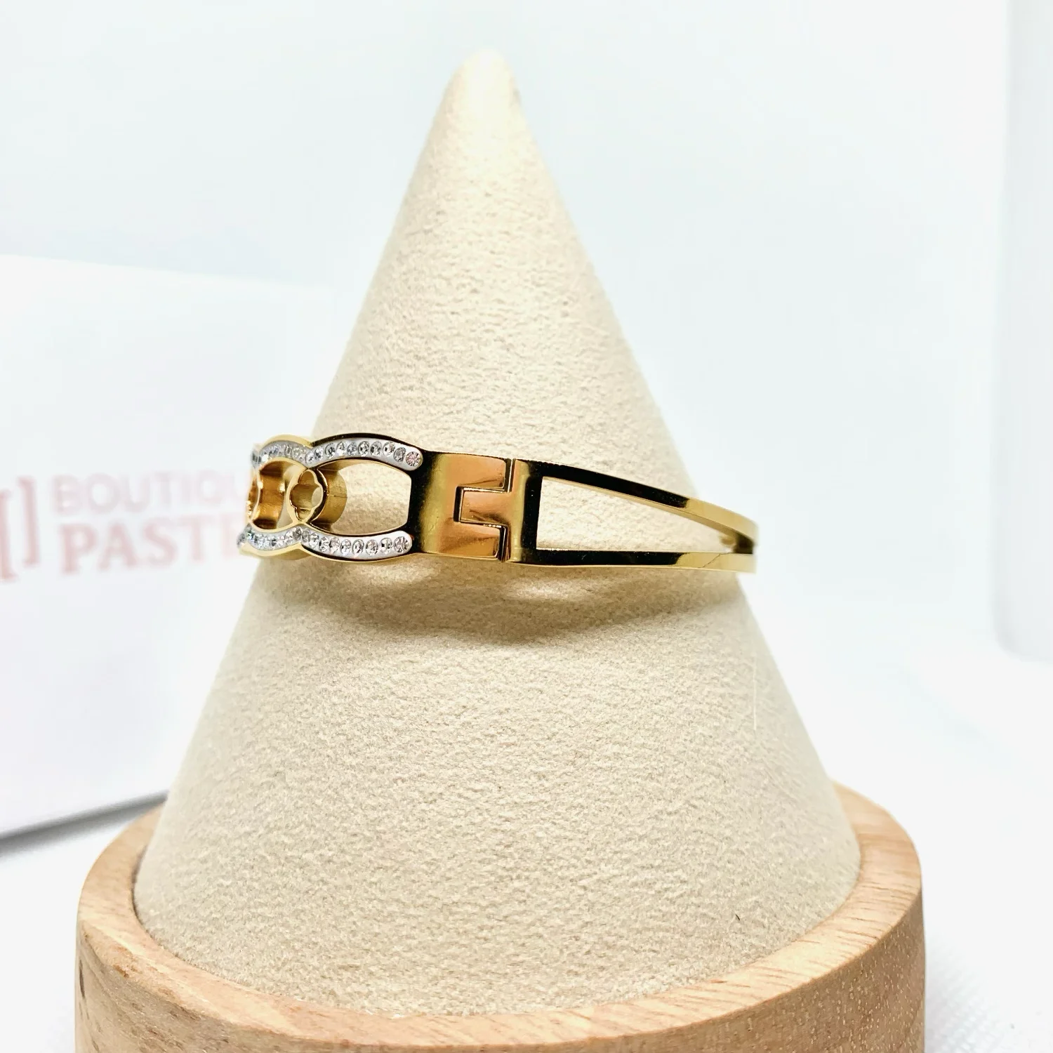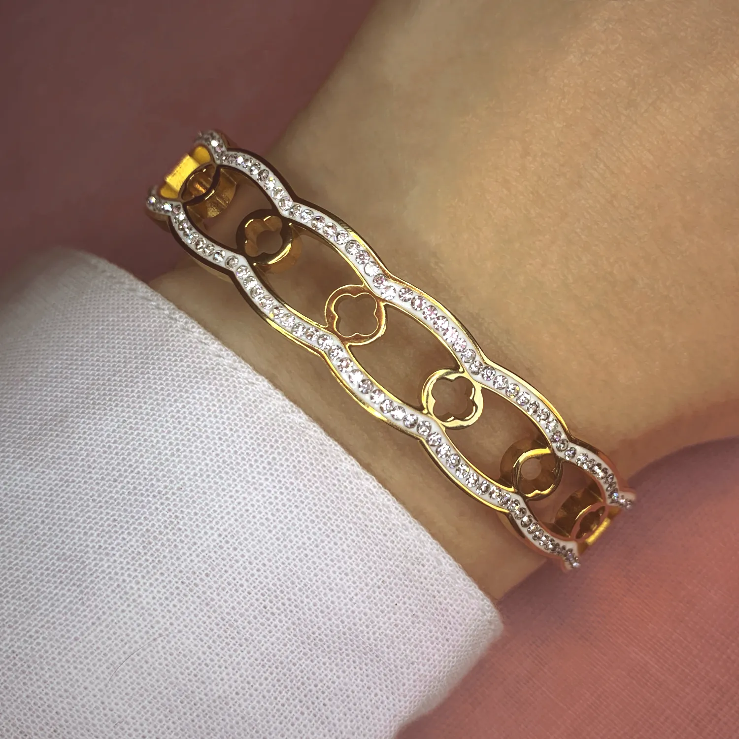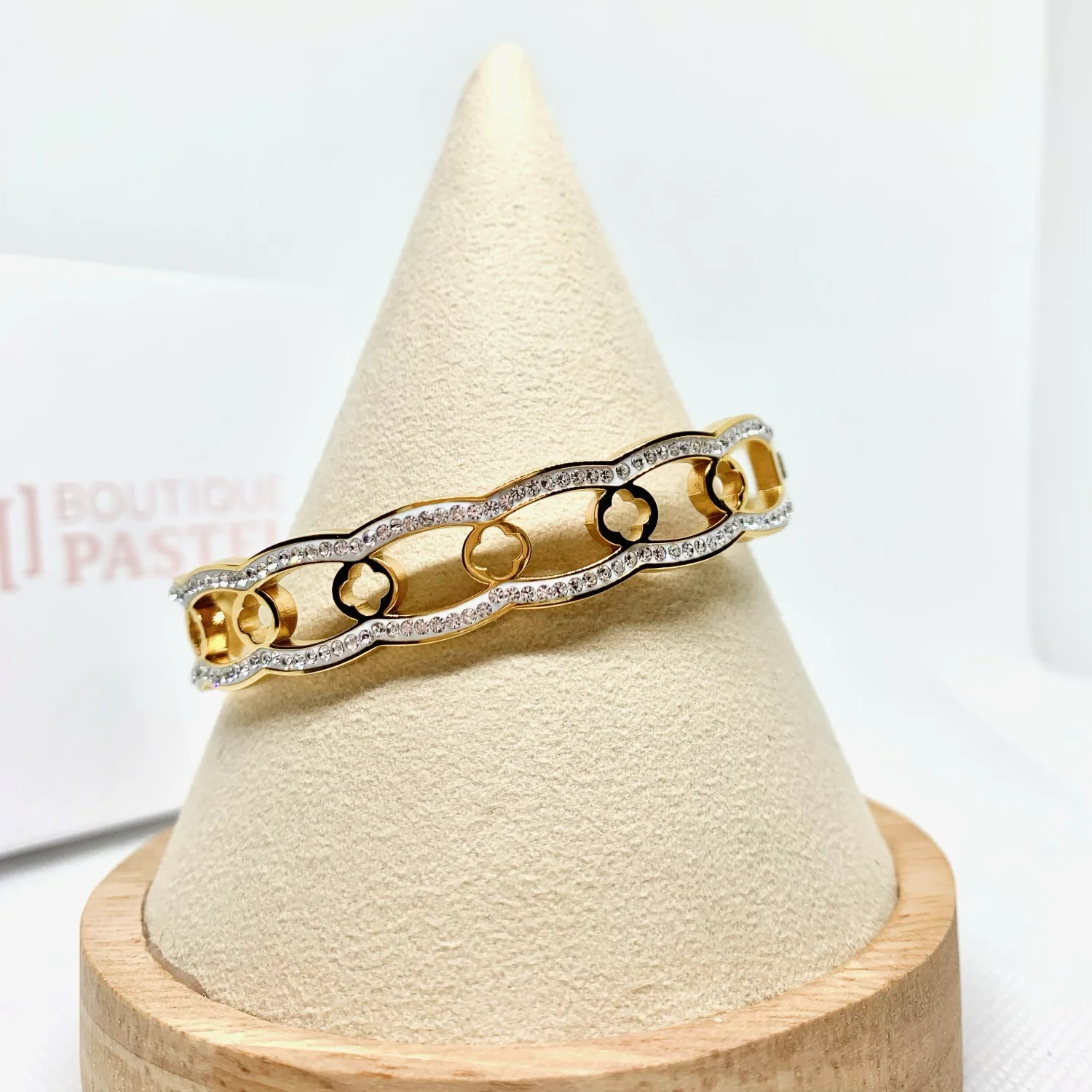 • Bracelet jonc en acier inoxydable en forme de trefle et en strass